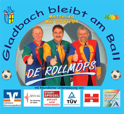 | Die Mottolied-CD (Ende 2003) Gladbach bleibt am Ball | Mottolied 2003/04 in Mönchengladbach + Gladbach – Halt Pohl (met Kölsche Leedcher) + Bonus – Lied: Mir sin jot drop | ![]() |