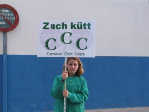 4) Aufstellung zum Umzug am Samstagnachmittag mit skeptischen Blick der Spanierin