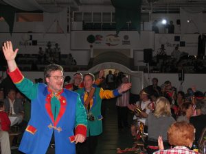 De Rollmöps bei einem der zahlreichen Sitzungsauftritte; hier z.B. auf der Sitzung der befreundeten KG Schwarz-Gold Odenkirchen.
